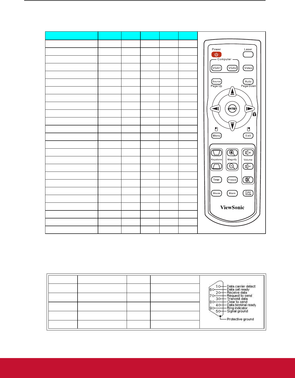 RS232 command table