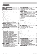 Contents Contents About this manual. . . . . . . . . . . 1 Contents. . . . . . . . . . . . . . . . . . 2 Projector features. . . . . . . . . . . 3 Preparations. . . . . . . . . . . . . . . 3 Checking the contents of package. . . . 3 Part names. . . . . . . . . . . . . . . . 4 Projector. . . . . . . . . . . . . . . . . . . . . . . 4 Control panel. . . . . . . . . . . . . . . . . . . . 5 Rear panel . . . . . . . . . . . . . . . . . . . . .