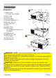 Setting up Arrangement (continued) WARNING ►Place the projector in a stable horizontal position. If the projector falls or is knocked over, it could cause injury and/or damage to the projector. Using a damaged projector could then result in fire and/or electric shock. • Do not place the projector on an unstable, slanted or vibrational surface such as a wobbly or inclined stand. • Do not place the projector on its side, front or rear position.
