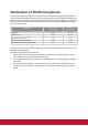 Declaration of RoHS Compliance This product has been designed and manufactured in compliance with Directive 2002/95/EC of the European Parliament and the Council on restriction of the use of certain hazardous substances in electrical and electronic equipment (RoHS Directive) and is deemed to comply with the maximum concentration values issued by the European Technical Adaptation Committee (TAC) as shown below: Proposed Maximum Actual Concentration Concentration Lead (Pb) 0.1% < 0.1% Cadmium (Cd) 0.