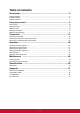 Table of contents Introduction ........................................................................................... 5 Projector features ................................................................................................................................... 5 Package contents .................................................................................................................................. 6 Projector overview .................................................................