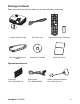 CONTENTS Introduction ...................5 Ceiling mount installation ...............59 Projector Features ............................ 5 Package Contents ............................ 6 Projector Overview ........................... 8 Appendix ..................... 60 Using the Product .......10 Control Panel ................................. 10 Connection Ports ............................ 11 Remote Control .............................. 13 Installing the Batteries ....................