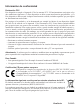 Información de conformidad Declaración FCC Este dispositivo cumple el Apartado 15 de las normas FCC. El funcionamiento está sujeto a las dos condiciones siguientes: (1) Este dispositivo no debe causar interferencias perjudiciales, y (2) Este dispositivo debe aceptar cualquier interferencia recibida, incluidas aquellas que provoquen un funcionamiento no deseado.