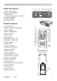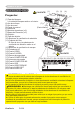 Nombre de piezas Nombre de piezas ¡CALIENTE! (1) (2) (3) (4) Proyector (5) (1) Tapa de lámpara La unidad de lámpara está en el interior. (2) Aro de enfoque (7) (6) (10) (3) Aro de zoom (7) (9) (8) (11) (4) Panel de control (Parte inferior) (5) Altavoces (6) Mandos elevadores (x 2) (7) Bases de Elevación (x 2) (8) Objetivo (9) Tapa de objetivo (10) Aberturas de ventilación de admisión (11) Cubierta del filtro El filtro de aire y las aberturas de ventilación de admisión están en el interior.