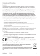 Compliance Information For U.S.A. This device complies with part 15 of FCC Rules. Operation is subject to the following two conditions: (1) this device may not cause harmful interference, and (2) this device must accept any interference received, including interference that may cause undesired operation.This equipment has been tested and found to comply with the limits for a Class B digital device, pursuant to part 15 of the FCC Rules.