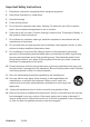 Important Safety Instructions 1. Read these instructions completely before using the equipment. 2. Keep these instructions in a safe place. 3. Heed all warnings. 4. Follow all instructions. 5. Do not use this equipment near water. Warning: To reduce the risk of fire or electric shock, do not expose this apparatus to rain or moisture. 6. lean with a soft, dry cloth. If further cleaning is required, see “Cleaning the Display” in C this guide for further instructions. 7.