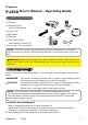 Content Content About this manual. . . . . . . . . . . 1 Content. . . . . . . . . . . . . . . . . . . 2 Projector features. . . . . . . . . . . 3 Preparations. . . . . . . . . . . . . . . 3 Contents of package. . . . . . . . . . . . . 3 Fastening the lens cover. . . . . . . . . . 3 Replacing the filter cover for bottom-up use . . . . . . . . . . . . . . . . 3 Part names. . . . . . . . . . . . . . . . 4 Projector . . . . . . . . . . . . . . .