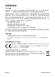 电磁相容信息 FCC 声明 本设备符合 FCC 规则第 15 部分的规定。其操作遵循下面两个条件:(1) 本设备不会导致 有害干扰;(2) 本设备必须承受任何接收到的干扰,包括可能导致异常操作的干扰。 本设备已通过测试,并符合 FCC 规则第 15 部分 B 级数位装置的限制。这些限制旨在提供 合理的保护,以防在一般住宅环境中造成有害干扰。本设备会产生、使用和发射无线电频率 能量,因此若没有依照指示安装及使用,可能会对无线电通讯产生有害的干扰。然而,并不 保证在特定安装方式下不会产生干扰。如果本设备对无线电或电视收讯产生有害干扰,(可 透过开、关设备判定),建议用户尝试以下方法消除干扰: • 重新调整或放置接收天线。 • 增加设备与无线接收设备之间的间距。 • 将该设备连接到与无线设备不同的另一插座上。 • 洽询销售商或具有无线电/电视经验的技术人员请求帮助。 警告:请注意,若未经符合性负责方的明确许可而对本装置进行任何未经授权之更改或修 改,可能会导致用户丧失操作本设备的权限。 加拿大地區 • 本B级数码设备符合加拿大有干扰设备管理规定的所有要求。 • Cet appareil numérique de