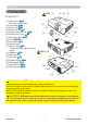 Content Content About this manual . . . . . . . . . . 1 Content . . . . . . . . . . . . . . . . . . 2 Projector features . . . . . . . . . . 3 Preparations . . . . . . . . . . . . . . 3 Contents of package . . . . . . . . . . . . .3 Fastening the lens cover . . . . . . . . . .3 Part names . . . . . . . . . . . . . . . 4 Projector . . . . . . . . . . . . . . . . . . . . . .4 Control panel . . . . . . . . . . . . . . . . . . .5 Rear panel . . . . . . . . . . . . . . . . . . . . .5 Remote control . . . . . .