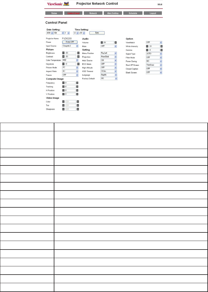 Power Använd för att starta eller stänga av projektorn via nätverket.