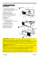 Manutenzione Sostituzione della lampada (continua) Avvisi di sicurezza relativi alla lampada ALTA TENSIONE ALTA TEMPERATURA ALTA PRESSIONE AVVERTENZA ►Il proiettore è dotato di una lampada di vetro con mercurio ad alta pressione. Se sottoposta a scossoni, graffiata, toccata quando è calda o se non viene sostituita quando è usurata, la lampada può rompersi con un forte scoppio oppure può fulminarsi.