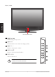 Front view ENGLISH Power Indicator LED 1 訊號源 SOURCE Switch among the input source. 2 選單 MENU Press the button to enter On Screen Display (OSD). 㿞㰳⑤ 3 音量 VOL +/- 䙌ஂ Increase or decrease the volume. ䷇䞣 4 選擇 CH p/q ䷇䞣 Increase or decrease channel number. 5 電源 POWER 1 2 3 䙌 crease or decrease ch 䙌 4 䳏⑤ Power indicator LED indicates if the LCD power is turned on (blue) or in stand-by state (red).