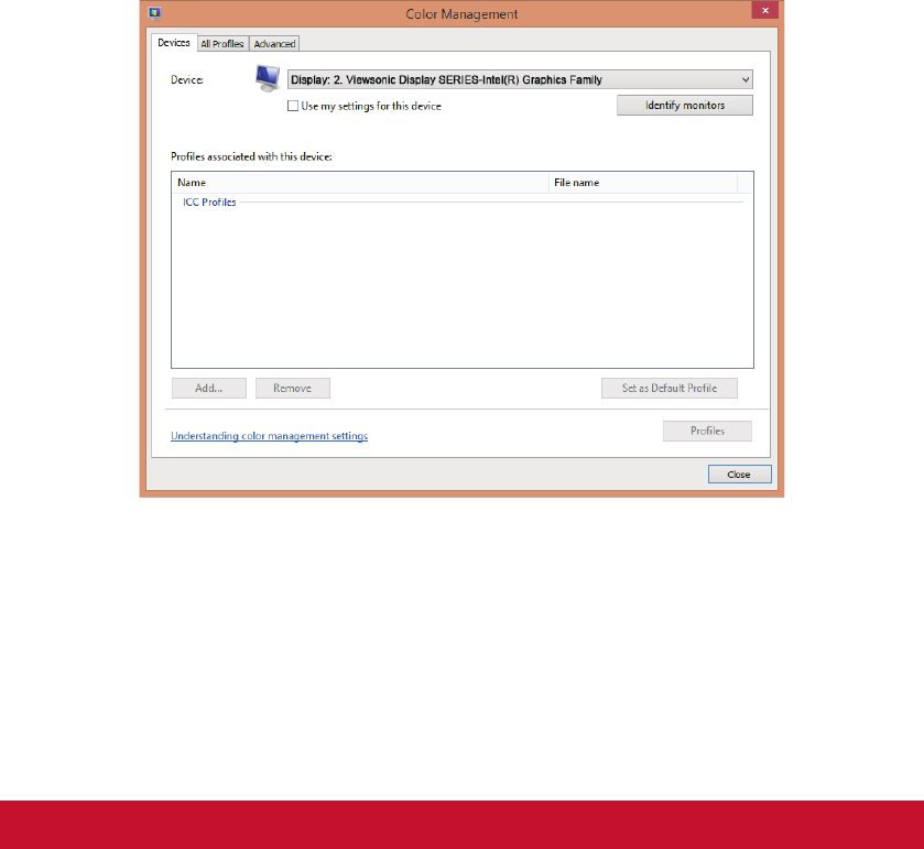 recognized by your PC in the ‘Color Management’ section of your