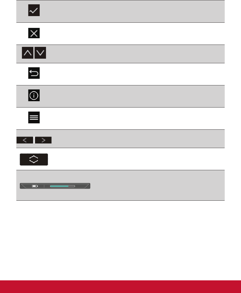 The OSD Menu and OSD Quick-Menu Symbol explanations and