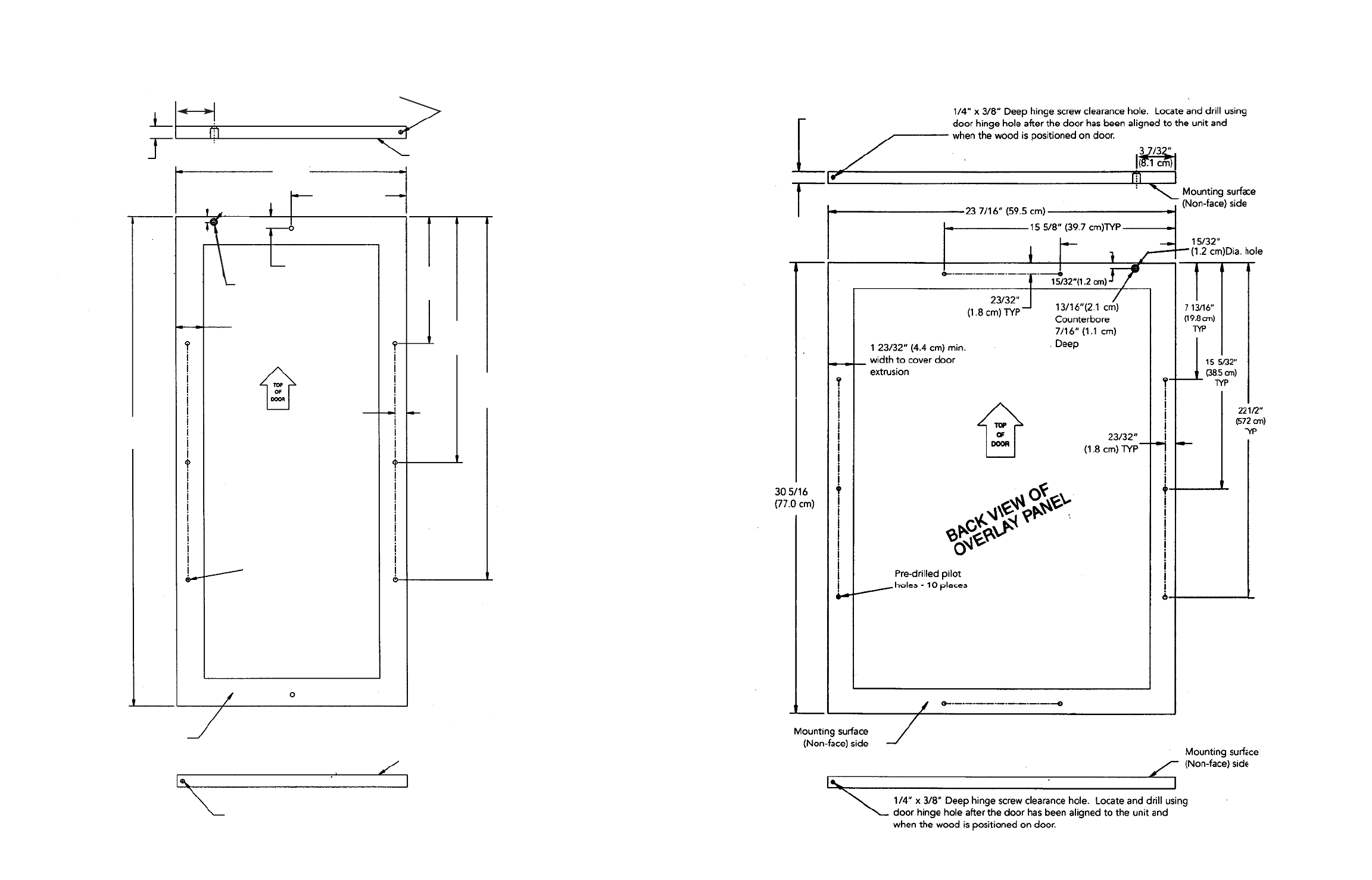 1/4” X 3/8” Deep hinge screw clearance hole. Locate and drill using