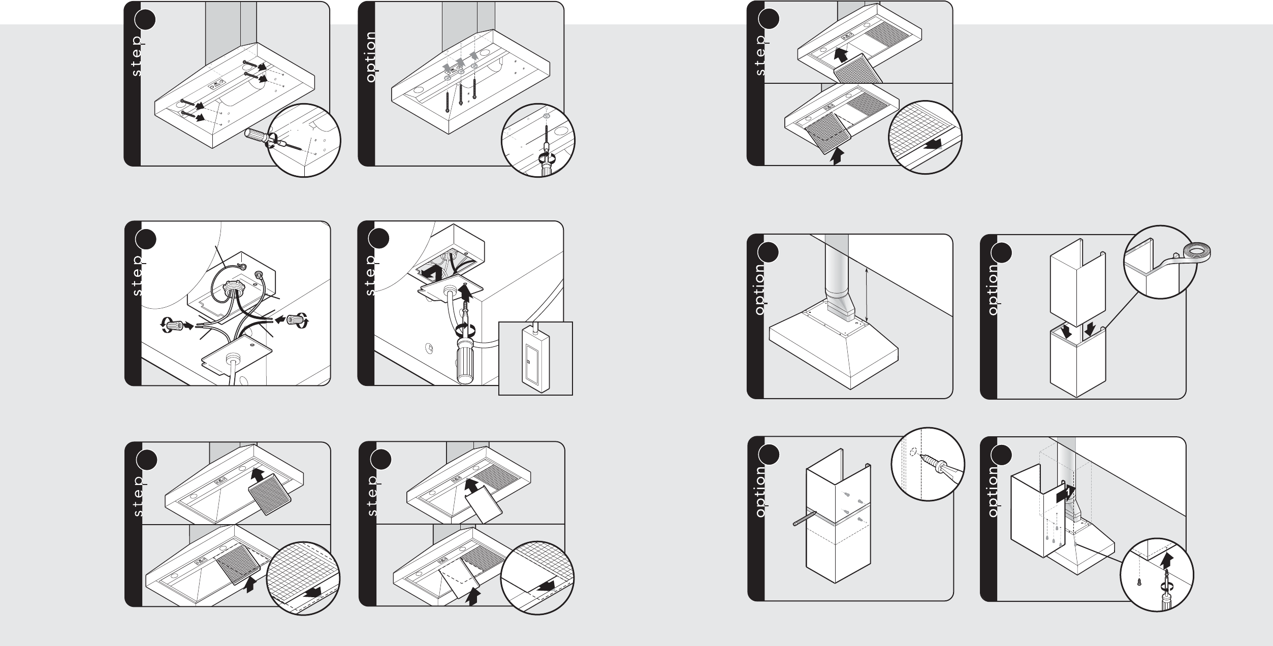 CAUTION: Secure vent hood to wall using screws
