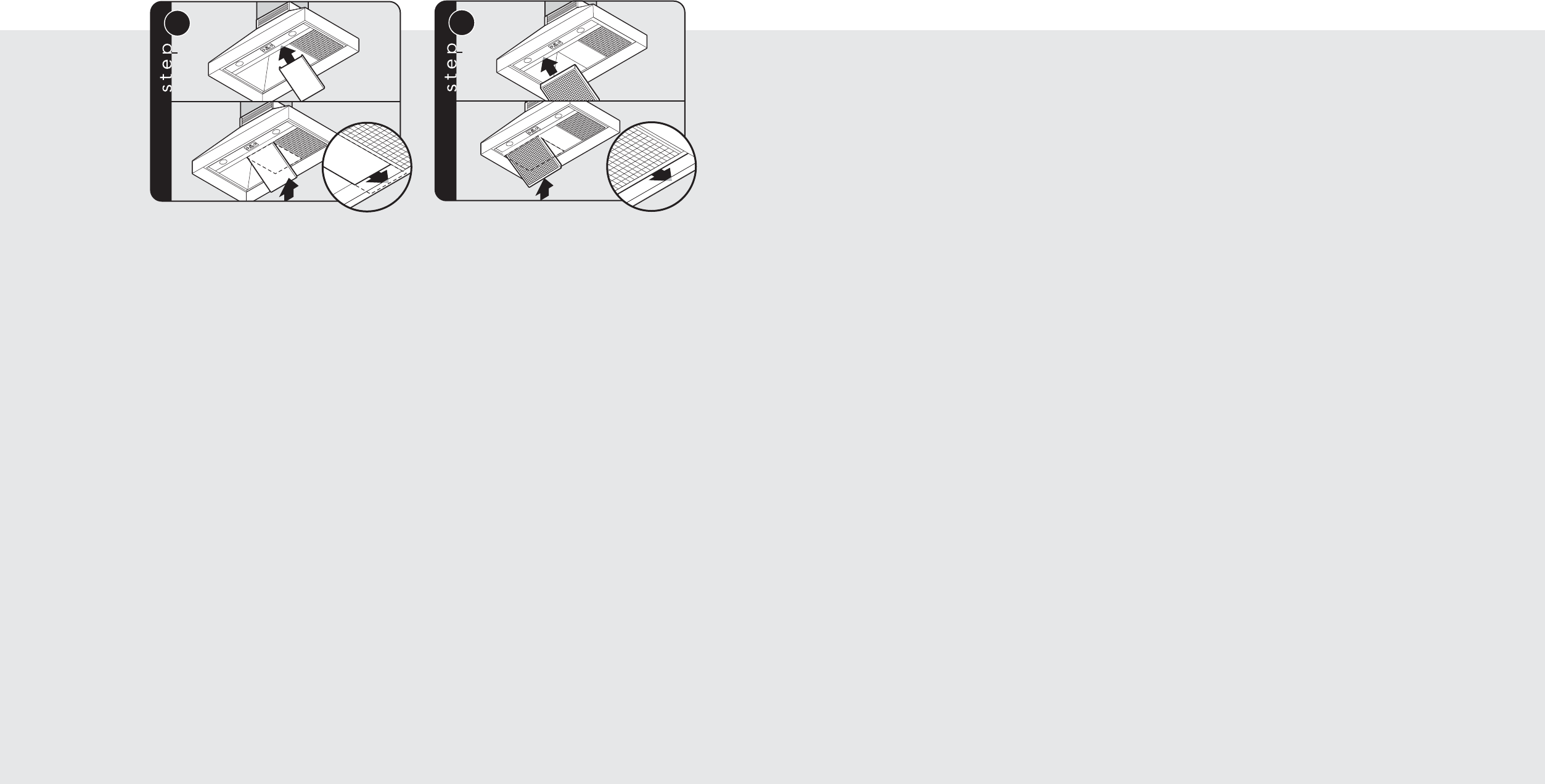 Slide filter front over front lip. Push filter rear up,