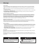 Warnings • PREPARED FOOD WARNING: Follow food manufacturer's instructions. If a plastic frozen food container and/or its cover distorts, warps, or is otherwise damaged during cooking, immediately discard the food and its container. The food could be contaminated. • If you are “flaming” liquor or other spirits under an exhaust, TURN THE FAN OFF. The draft could cause the flames to spread out of control.