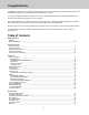 Congratulations Congratulations and welcome to the elite world of Viking Range, LLC ownership. We hope you will enjoy and appreciate the care and attention we have put into every detail of your new, state-of-the-art range. Your range is designed to offer years of reliable service. This Use and Care Manual will provide you with the information you need to become familiar with your range’s care and operation. Your complete satisfaction is our ultimate goal.