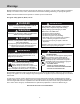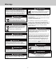 Warnings • PREPARED FOOD WARNING: Follow food manufacturer's instructions. If a plastic frozen food container and/or its cover distorts, warps, or is otherwise damaged during cooking, immediately discard the food and its container. The food could be contaminated. • If you are “flaming” liquor or other spirits under an exhaust, TURN THE FAN OFF. The draft could cause the flames to spread out of control.