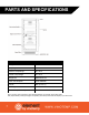 PARTS AND SPECIFICATIONS Model EL-WCU113-03 Voltage 115V Frequency 60Hz Ambient Temp Range 60 - 90°F Control Temp Range 40 - 64°F Refrigerant R600a/0.64 Oz Power Consumption 0.487 kWh/24h Volume 85L (3.0 cu.ft.) Net Weight 82 lbs Dimensions (W x D x H) 14-3/4” x 22-1/2” x 33-1/8” *Note: This wine cooler is designed to store standard Bordeaux 750 ml bottles.