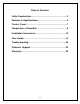 Table of Contents Cellar Construction.…………………….……………………..3 Features & Specifications.…………………….……………..4 Control Panel……………………………………....……..……7 Temperature & Humidity…………………………..…………8 Installation Instructions……………..………………………12 Care Guide…………………………………………………….19 Troubleshooting………….…………………………………..20 Customer Support……………………………………………23 Warranty……………………………………………………….