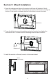 Section 5: Mount Installation 1. Open the package and take out the product with foam still attached. Gently place it on a desktop or table. Remove the extra parts and the foam covering the monitor. If the monitor is already attached to the stand, remove the stand. Button 2. Press the button to remove the adapter on back of monitor, then tighten the included four NO. 2 screws onto the mounting holes on back of monitor. NO. 2 Screws x 4 3. Install the monitor on the wall, mount, or fixture as desired.