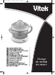 Vt-1612.qxd 16.11.04 12:46 Page 1 ENGLISH Citrus Juice Extractor Description 1. Dust protective cover (for storage) 2. Big cone attachment to extract maximum amount of juice from big fruits (grapefruit or orange). 3-4.Small cone attachment with scraper blades to squeeze juice from smaller fruits (lemon or lime); the scraper blades prevent pulp collection on the strainer and help to extract juice from pulp. 5. Strainer dish to keep the stones and chunks of pulp away from the juice. 6. 600 ml juice jug.