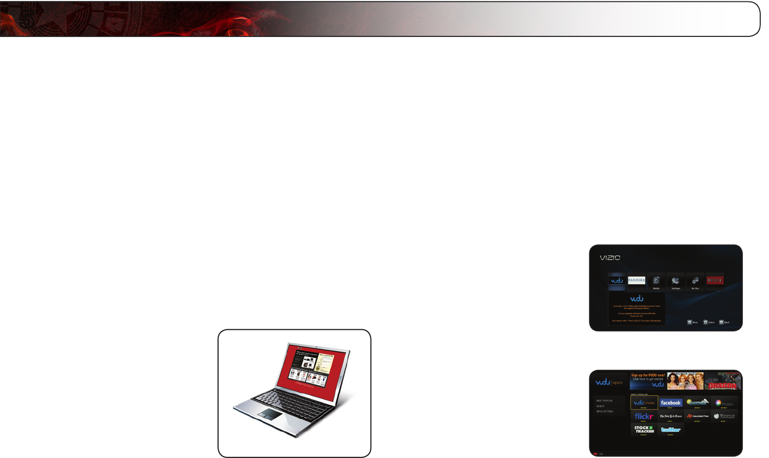 movies and TV programs from the internet to your TV. VUDU also features popular