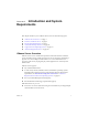 Chapter 1 Introduction and System Requirements Hardware Requirements ! Standard x86‐based computer. ! 266MHz or faster processor. ! 64MB RAM minimum. ! 30MB (for Windows hosts) or 60MB (for Linux hosts) of free disk space is required for installation of the VMware Server Console. ! 17MB free disk space is required for VMware Scripting APIs (VmCOM and VmPerl APIs) installation on Windows remote clients. 14MB is required for VmPerl API on Linux remote clients.
