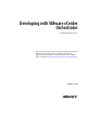 Developing with VMware vCenter Orchestrator You can find the most up-to-date technical documentation on the VMware Web site at: http://www.vmware.com/support/ The VMware Web site also provides the latest product updates. If you have comments about this documentation, submit your feedback to: docfeedback@vmware.com Copyright © 2008–2013 VMware, Inc. All rights reserved. This product is protected by U.S. and international copyright and intellectual property laws.