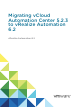Migrating vCloud Automation Center 5.2.3 to vRealize Automation 6.2 You can find the most up-to-date technical documentation on the VMware website at: https://docs.vmware.com/ If you have comments about this documentation, submit your feedback to docfeedback@vmware.com VMware, Inc. 3401 Hillview Ave. Palo Alto, CA 94304 www.vmware.com Copyright © 2014–2015 VMware, Inc. All rights reserved. Copyright and trademark information. VMware, Inc.
