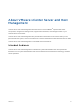 About VMware vCenter Server and Host Management ® vCenter Server and Host Management describes how to use the VMware vSphere Web Client components, configure and manage hosts, migrate virtual machines, and manage licenses in your vCenter Server environment. vCenter Server and Host Management also provides brief introductions to the various tasks you can perform within the system, and it cross-references to the documentation that describes the tasks in detail.