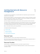 Getting Started with Resource Management 1 To understand resource management, you must be aware of its components, its goals, and how best to implement it in a cluster setting. Resource allocation settings for a virtual machine (shares, reservation, and limit) are discussed, including how to set them and how to view them. Also, admission control, the process whereby resource allocation settings are validated against existing resources is explained.