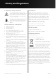 1 Safety and Regulations 1.1 Important safety instructions The lightning flash with an arrowhead symbol within an equilateral triangle is intended to alert the user to the presence of uninsulated “dangerous voltage” within the product’s enclosure that may be of sufficient magnitude to constitute a risk of electric shock to persons.