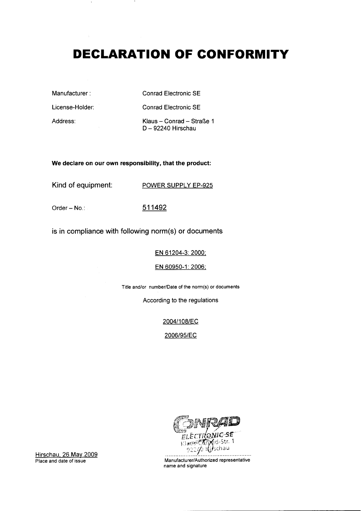 Declaration of conformity
