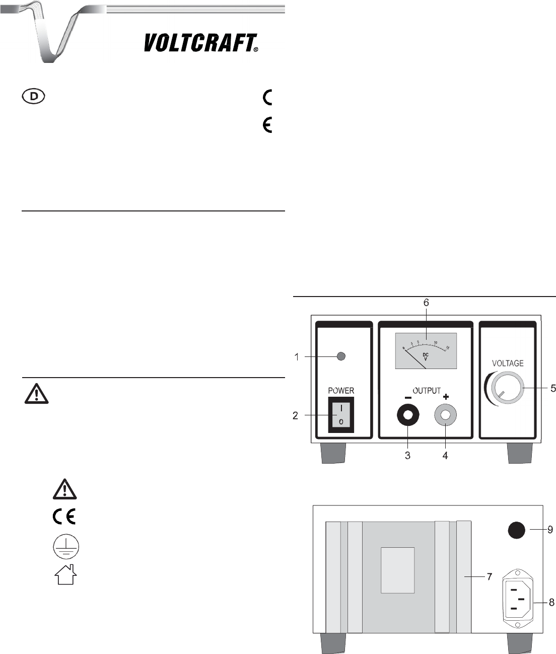 Ez a tápegység az I. védelmi osztálynak felel meg. A labortápegységet csak védőföldeléssel ellátott, 230V~