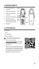 - 3. BEDIENINGSELEMENTEN 1 NCV-spanningssensor 2 Stroomtang 3 Handvatbereikbegrenzing 4 Toetsenring voor meetfunctieselectie 5 Stroomtangopeningshendel 6 Meetweergave (scherm) 7 Knop voor het in-/uitschakelen en voor de schermverlichting 8 Batterijvak 4. LEVERINGSOMVANG • Stroomtang • Tas • 2x LR44-batterijen • Gebruiksaanwijzing Geactualiseerde gebruiksinstructies: 1. Open www.conrad.com/downloads in een browser of scan de afgebeelde QR-code. 2.