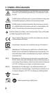 - 5. VERKLARING VAN SYMBOLEN Een uitroepteken in een driehoek wijst op belangrijke instructies in deze gebruiksaanwijzing die absoluut moeten worden opgevolgd. Een bliksemschicht in een driehoek waarschuwt voor een elektrische schok of een veiligheidsbeperking van elektrische onderdelen in het apparaat. Een bliksem-symbool in het kwadraat laat de stroommeting aan niet-geïsoleerde, gevaarlijk actieve stroomleiders toe en waarschuwt voor mogelijke gevaren.