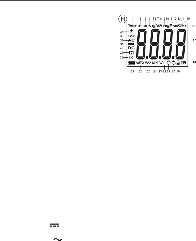 34 Warnsymbol für gefährliche Spannung bzw. mit Warnton für Messbereichsüberschreitung