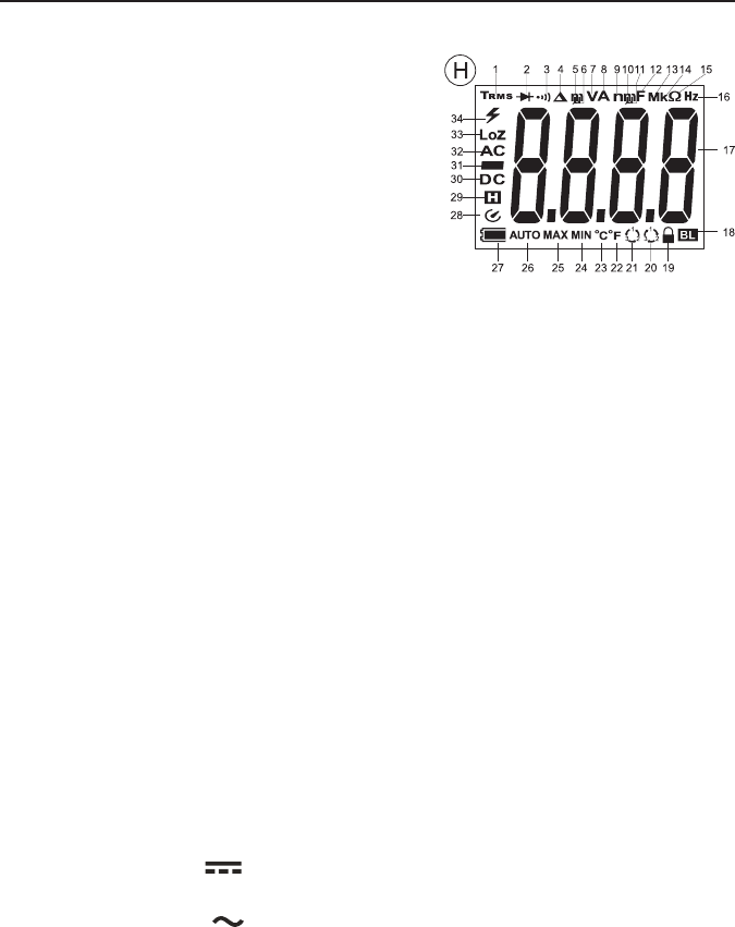 34 Waarschuwingssymbool voor gevaarlijke spanning of met waarschuwingsgeluid voor meetbereikoverschrijding