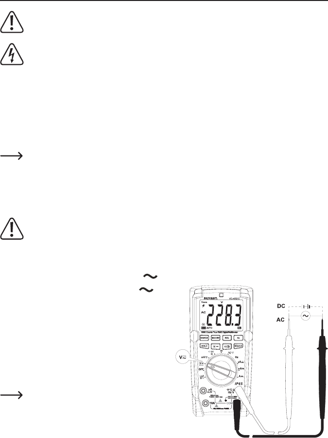 - Schakel de DMM in en kies de meetfunctie “V “. Op