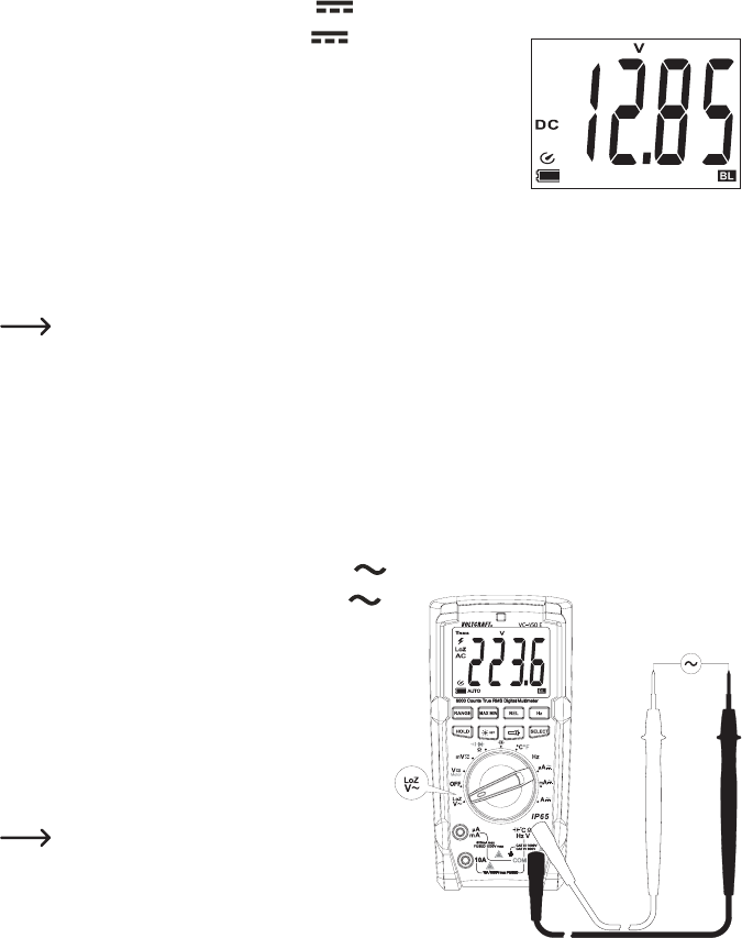 Voor het meten van gelijkspanningen “DC” (V ) gaat u als volgt te werk: