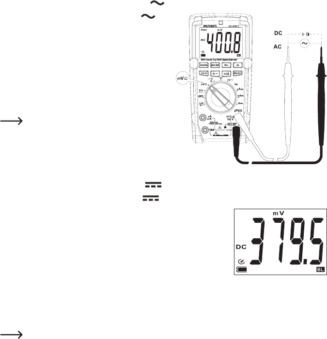 Voor het meten van gelijkspanningen “DC” (mV ) gaat u als volgt te werk: