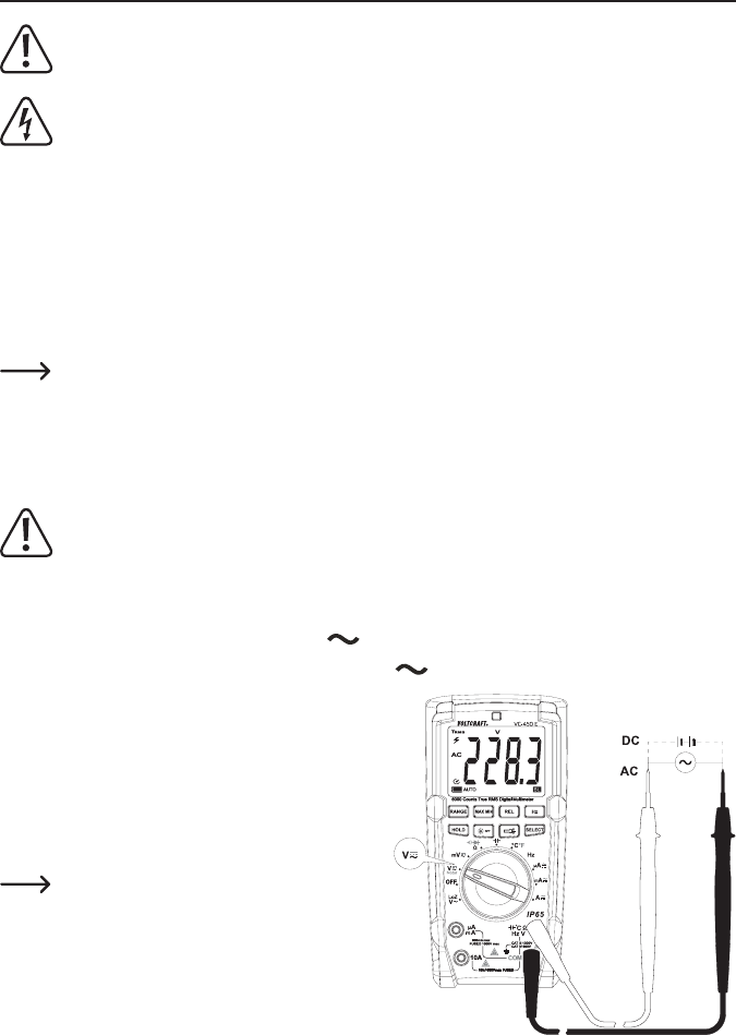 Messungen in Stromkreisen >33 V/AC und >70 V/DC dürfen nur von Fachkräften und eingewiese-