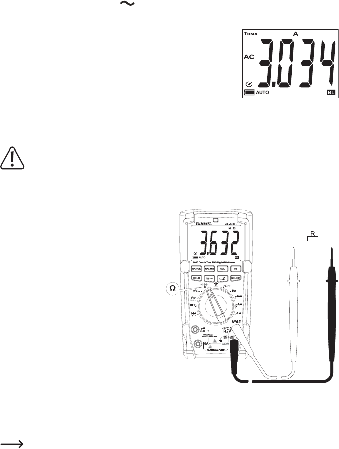 Zur Messung von Wechselströmen (A ) gehen Sie wie zuvor beschrieben vor.