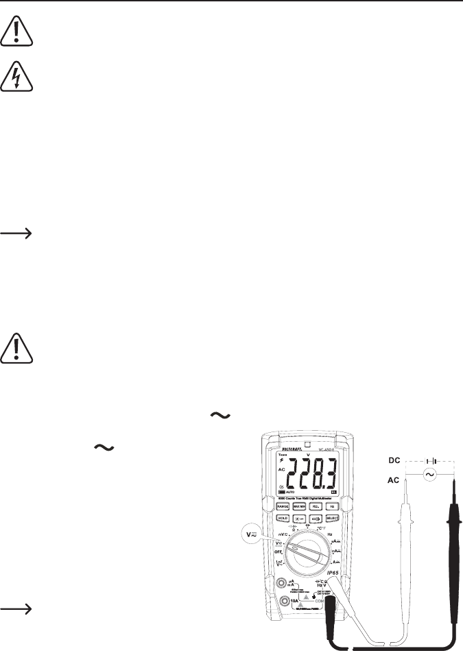 tion de mesure « V ». Les indications « AC » et
