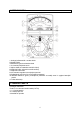 . SESTAVNI DELI 1 Analogni prikazovalnik z zrcalno skalo 2 Kazalec skale 3 Nastavitveni gumb za kazalec skale 4 10 A merilni priključek za tok 5 Vrtljivo stikalo za nastavitev merilnih funkcij 6 Priključek COM (referenčna merilna točka) 7 Priključek V/Ω/mA/Hz 8 0 Ω izravnalni regulator za merjenje upornosti 9 Preklapljanje med Vrms/Vp-p za merjenje napetosti 10.Stranska zaščita iz gume, podnožje za postavitev na zadnji strani in vgrajen baterijski .....predal 11 Prikaz delovanja 5.