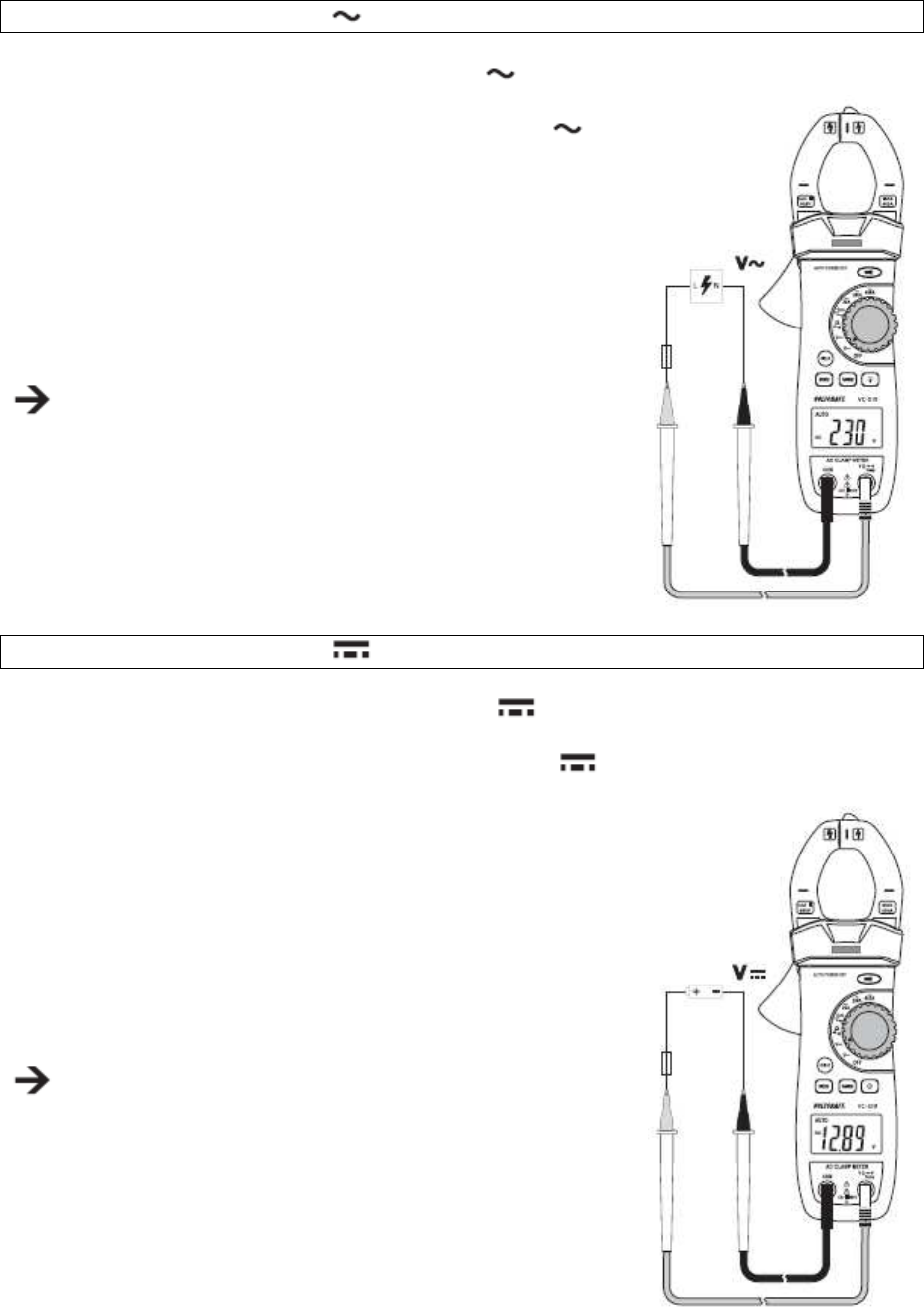 Pri merjenju izmenične napetosti „AC“ (V  ) upoštevajte naslednje korake: