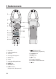 - 8. Toetsen en bedieningsknop Toets Functie Verander meetbereik Referentiewaarde meting inschakelen Gesplitst display activeren in de < > of < > modus Schakel modi (zie rode/zwarte symbolen op de regelaar) Toon maximum/minimum meting Schakel de automatische achtergrondverlichting uit Leg de huidige meting vast op het display Gebruik de bedieningsknop (16) om een meetmodus/ meetbereik te kiezen.